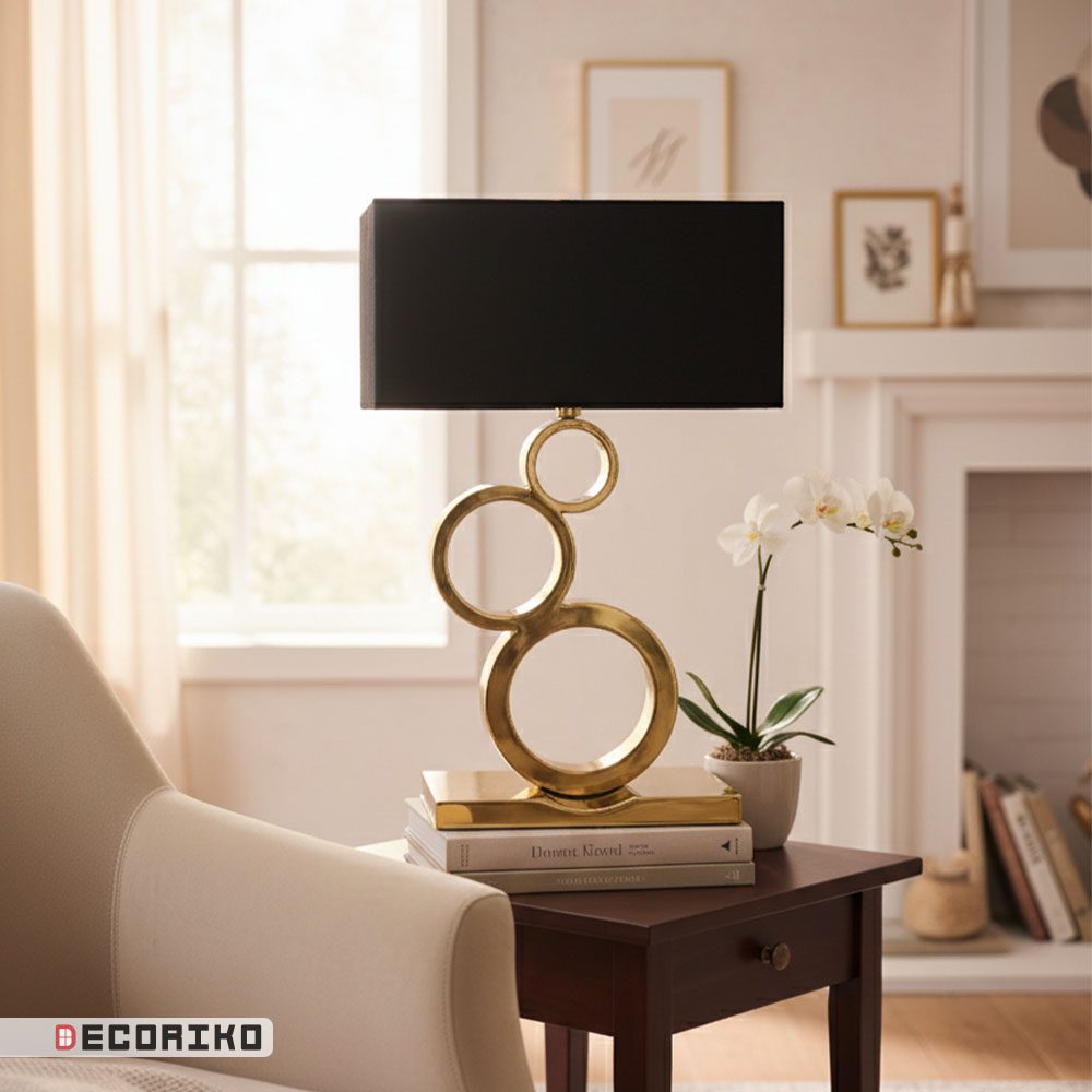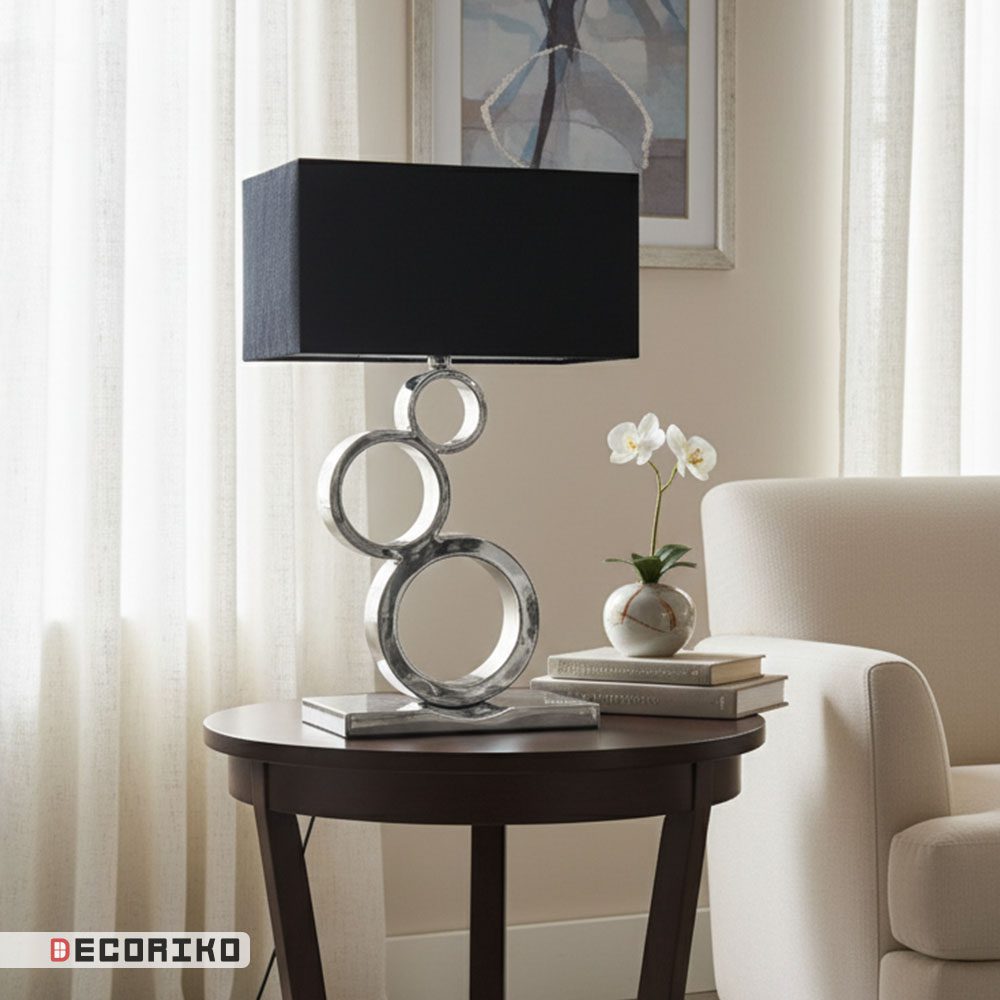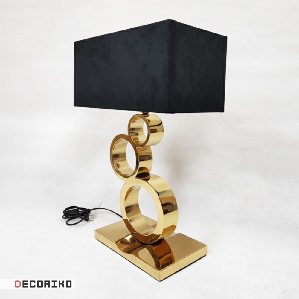 آباژور رومیزی مدل سه حلقه، انتخابی دکوراتیو و کاربردی برای افزودن نور ملایم به فضای شما است. پایهی این آباژور از استیل باکیفیت ساخته شده و شامل سه حلقهی در هم تنیده است که ظاهری مدرن و پویا به آن میبخشد.