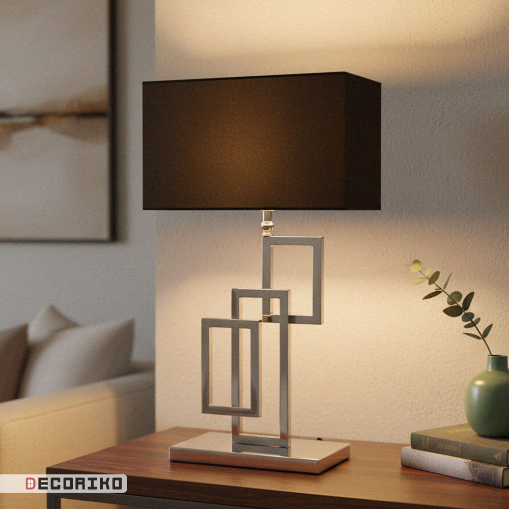 آباژور رومیزی مدل مشبک، با طراحی هندسی و مدرن، گزینهای دکوراتیو برای افزودن نور به فضای شماست. پایهی این آباژور از استیل باکیفیت ساخته شده و شامل سه قاب مستطیلی توخالی است که به شکلی هنرمندانه در هم تنیده شدهاند. این ساختار، ظاهری پویا و در عین حال متعادل ایجاد میکند.
