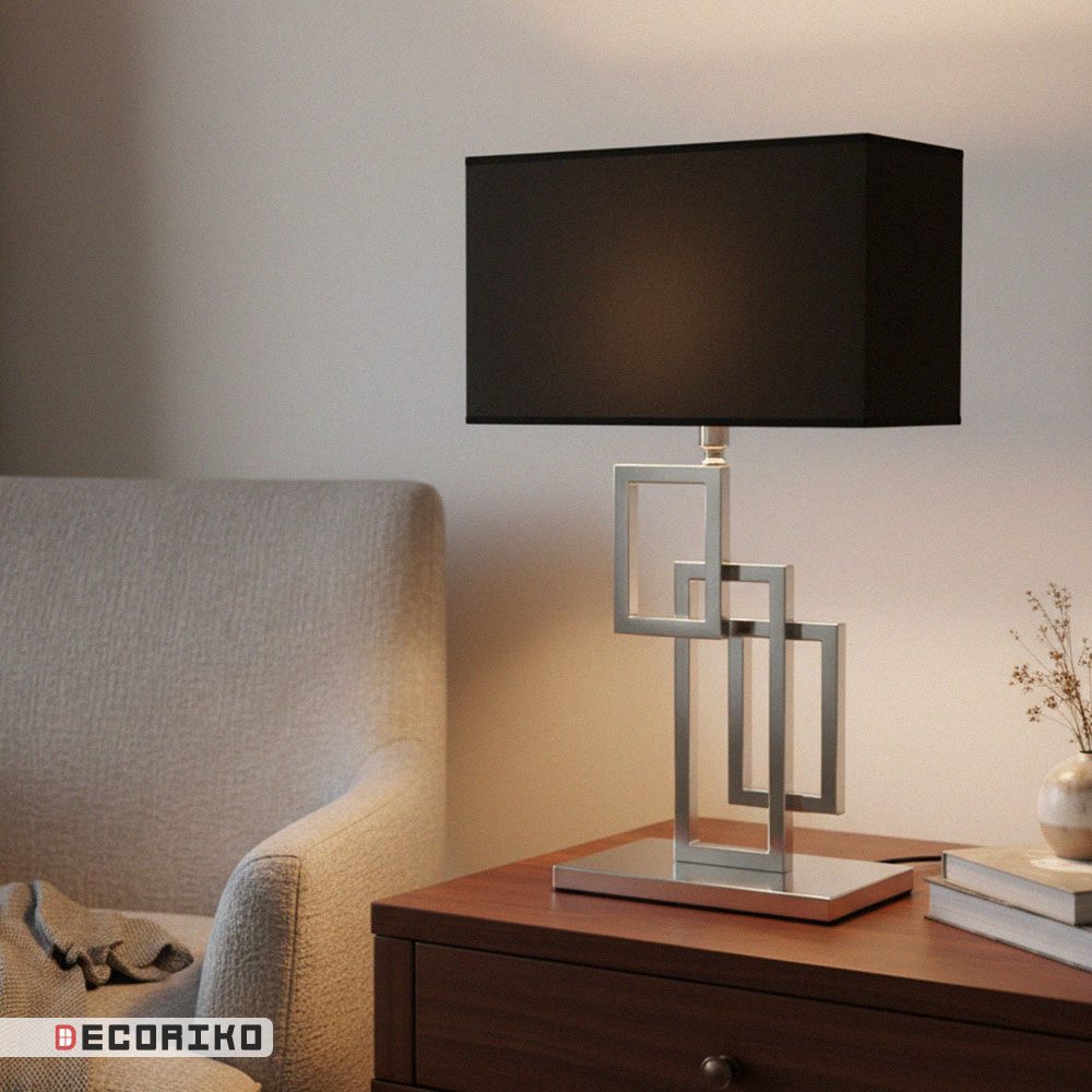 شید مستطیلی آباژور، که از پارچهای باکیفیت به رنگ مشکی ساخته شده، تضاد زیبایی با پایهی فلزی ایجاد میکند. این شید نور را به صورت ملایم و گرم پخش کرده و فضایی آرام میسازد. این مدل برای استفاده روی میز کنار سالنی، کنسول ورودی یا اتاق خواب بسیار مناسب است.