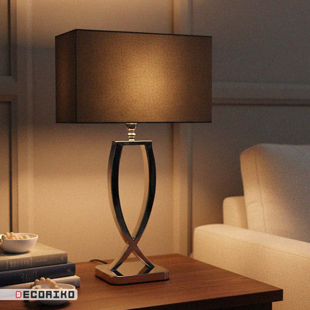 شید مستطیلی این آباژور، که با پارچه‌ای به رنگ تیره (مانند مشکی یا خاکستری سربی) هماهنگ شده، نوری گرم و متمرکز را به سمت بالا و پایین هدایت می‌کند و فضایی دنج و آرامش‌بخش می‌سازد. این آباژور برای قرارگیری روی میز کنسول، میز کنار مبلی در اتاق نشیمن یا به عنوان چراغ خواب روی میز پاتختی گزینه‌ای ایده‌آل است.