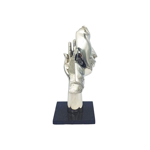 تندیس مدل صورتک خواب، یک قطعه هنری منحصربهفرد است که حس آرامش و سکون را در طراحیای زیبا و مدرن به نمایش میگذارد. این صورتک با رنگ نقرهای براق و خطوط دقیق، جلوهای شیک و لوکس به دکوراسیون داخلی شما میبخشد.