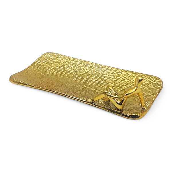 آدمک بالرین این ظرف، حس پویایی و زیبایی را القا میکند، در حالی که سطح چکشی کاسه، نور را به شکلی چشمنواز منعکس کرده و جلوهای مدرن و خاص ایجاد میکند. این طراحی، علاوه بر کاربردی بودن، بهعنوان یک قطعهی دکوری نیز جذابیت خاصی دارد.