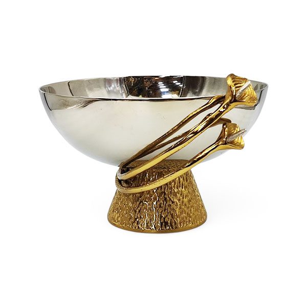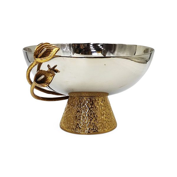 میوه خوری مدل لیلیوم طلایی، شاهکاری از هنر و طراحی است که ترکیب نقرهای و جزئیات طلایی را به زیباترین شکل ممکن نمایش میدهد. پایهی این ظرف با نقش برجستهی چوبی و تزئین گلهای لیلیوم طلایی، جلوهای خاص به میز پذیرایی شما میبخشد.