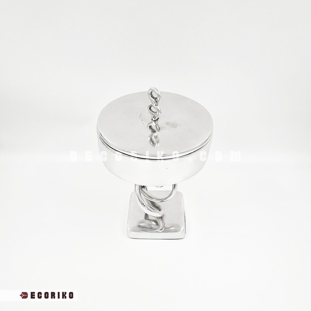جنس این محصول از آلومینیوم پرداخت شده و باکیفیت است که علاوه بر درخشش فوقالعادهای که دارد (رنگ سیلور)، بسیار سبک و در عین حال بادوام است. برخلاف ظروف کریستالی نگران شکستن آن نیستید و همیشه مثل روز اول برق میزند. درب این شکلاتخوری کاملاً کیپ میشود تا تازگی شکلاتها و خوراکیهای خوشمزهتان حفظ شود. اگر به دنبال تلفیقی از هنر مدرن و کاربرد روزمره هستید، این ظرف زیبا در فروشگاه دکوریکو منتظر گرما بخشیدن به دورهمیهای شماست.