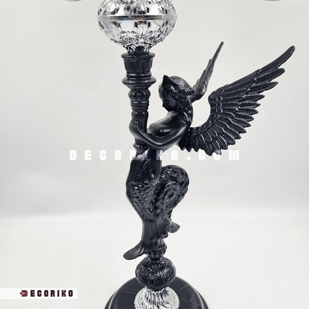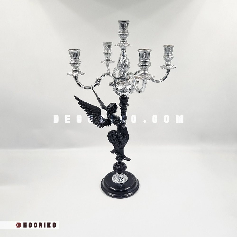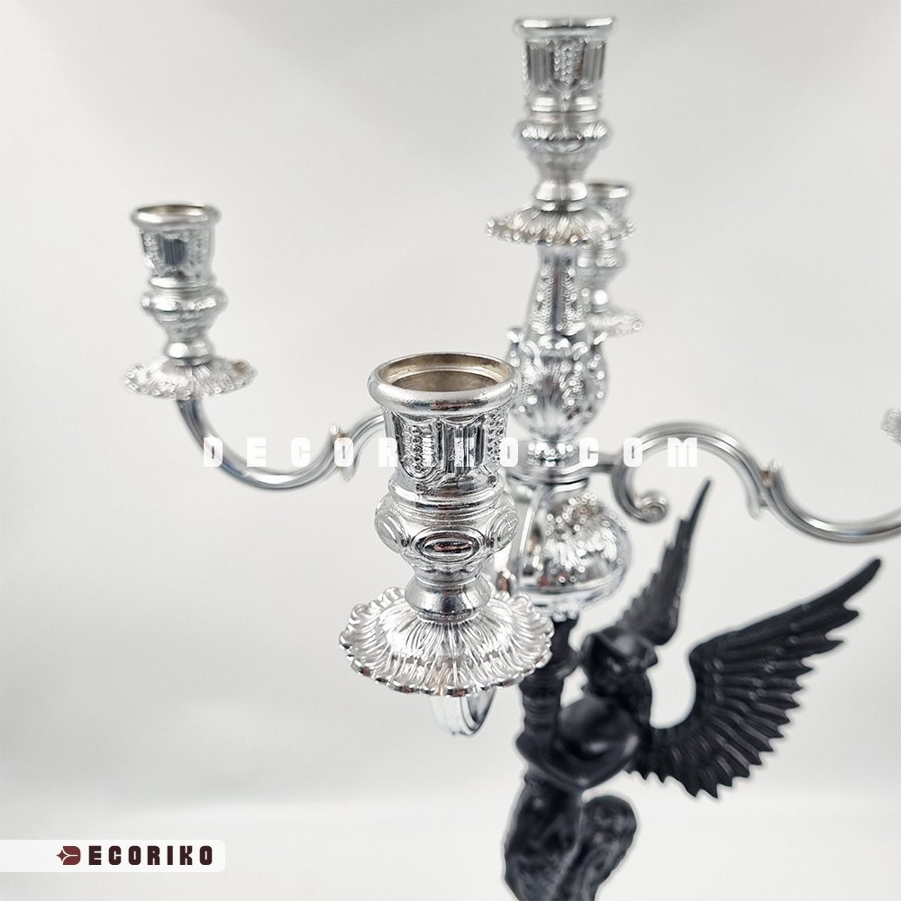 تصور کنید فضایی از خانه که با درخشش ملایم شمعها و هنر آمیخته شده باشد. شمعدان ۵ شعله کلاسیک طرح فرشته، تنها یک وسیله روشنایی نیست؛ بلکه قطعهای هنری است که نگاهها را به خود خیره میکند. در طراحی این شمعدان رومیزی خاص، تضاد زیبای پیکرهی مشکی فرشته با شاخههای درخشان و نقرهای رنگ، هارمونی بینظیری ایجاد کرده که با هر نوع دکوراسیون، از کلاسیک تا نئوکلاسیک، هماهنگ میشود.