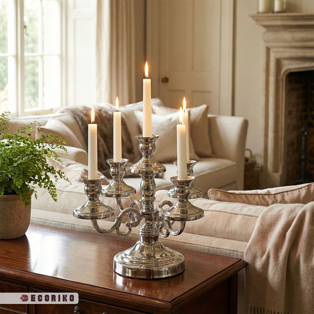 هیچ چیز مانند رقص نور شمع نمیتواند فضای خانه را گرم، رمانتیک و آرامشبخش کند. شمعدان ۵ شعله مدل سیلوین، با طراحی کلاسیک و ظرافت بینظیرش، دقیقاً همان تکهای است که دکوراسیون شما برای کامل شدن به آن نیاز دارد. ✨