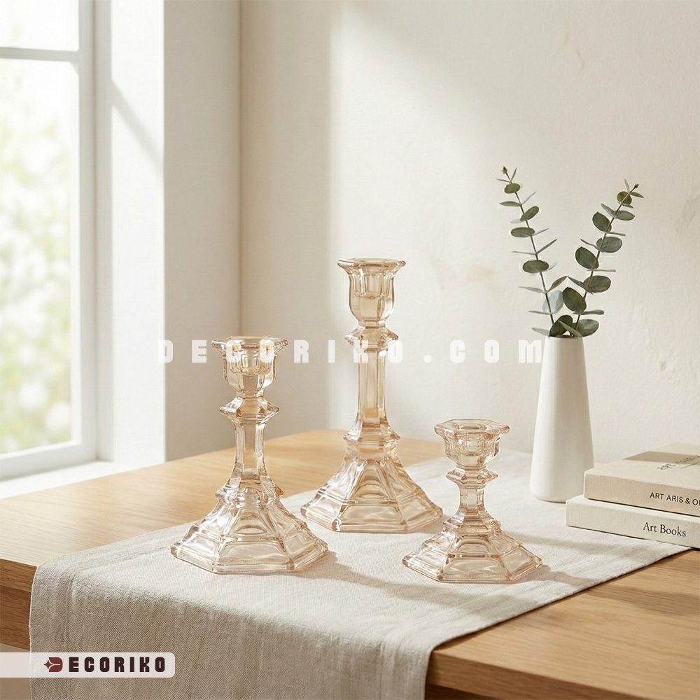 جنس این شمعدانها از کریستال شفاف با توناژ رنگی ملایم و بسیار شیک است که با عبور نور، درخششی خیرهکننده پیدا میکند. پایه این کار با تراشهای هندسی و چندضلعی طراحی شده که علاوه بر ایستایی عالی روی سطح، ظاهری مدرن و مینیمال به آن بخشیده است. چه برای یک شام عاشقانه و چه برای دکور روزمره، این ست سه تایی به راحتی با دکوراسیون کلاسیک و مدرن هماهنگ میشود. اگر به دنبال یک تغییر کوچک اما تأثیرگذار در چیدمان منزل هستید، این محصول زیبا در فروشگاه دکوریکو منتظر شماست. 🕯️🏠