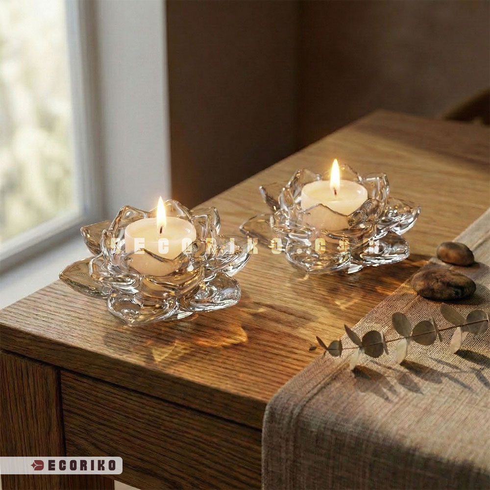 هیچ چیز مانند رقص نور شمع نمی‌تواند فضای خانه را گرم و صمیمی کند، به‌ویژه زمانی که این نور از میان لایه‌های ظریف جاشمعی بلور طرح گل نیلوفر عبور کند. این محصول با الهام از گل زیبای مرداب طراحی شده و نمادی از آرامش و زیبایی طبیعی است که حالا می‌تواند زینت‌بخش میز پذیرایی، میز عسلی یا حتی کنج دنج اتاق خواب شما باشد.