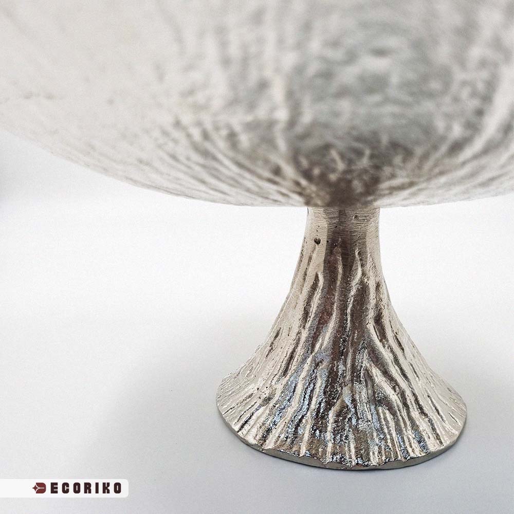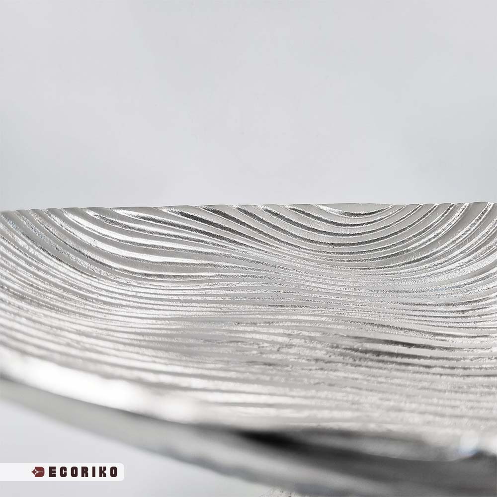 این ظرف زیبا با الهام از طبیعت طراحی شده است؛ سطح داخلی آن دارای خطوطی منحنی و آرامشبخش شبیه به امواج دریا یا ردهای به جا مانده روی شنهای ساحل است که جلوهای مدرن و در عین حال اصیل به آن بخشیده. پایه این محصول نیز با بافتی شبیه به تنه درخت، حس ایستایی و طبیعی بودن را القا میکند.