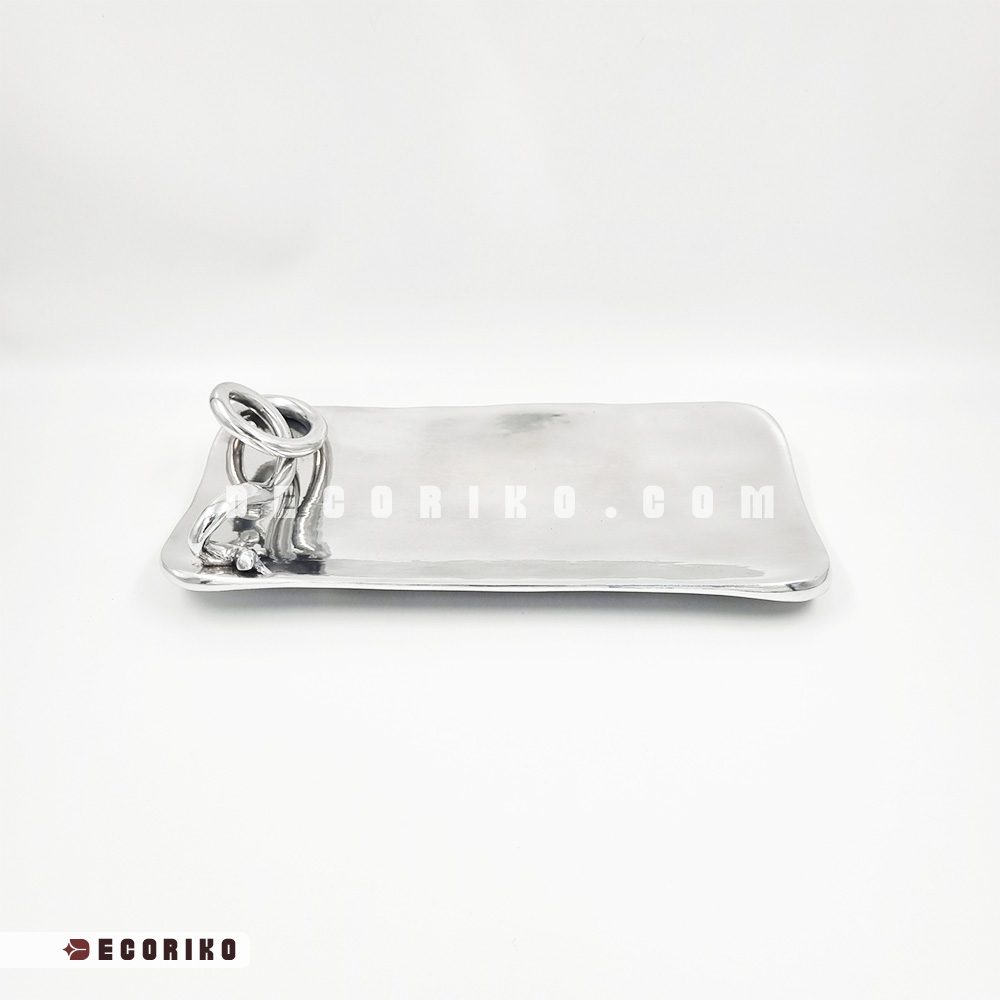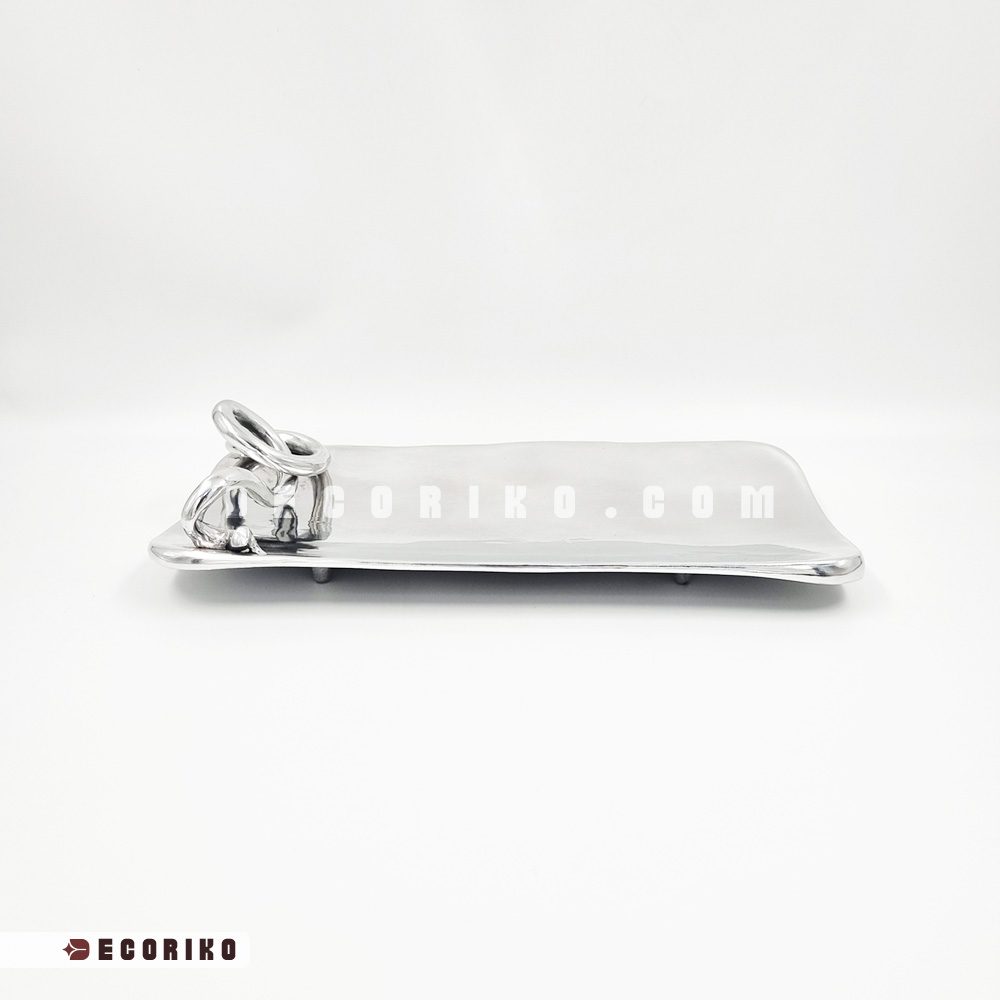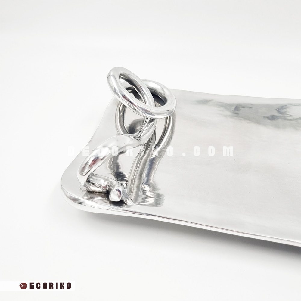 این ظرف زیبا تنها یک سینی سرو معمولی نیست؛ بلکه یک اثر هنری مدرن است. این محصول از آلومینیوم پرداخت شده و باکیفیت ساخته شده که درخشش نقرهای آن، چشم هر بینندهای را خیره میکند. بر خلاف ظروف روکشدار، خیالتان راحت باشد که رنگ این رولت خوری ثابت است و سیاه نمیشود. طراحی دستگیرهی خاص آن که شبیه به یک پیچ یا گرهی هنری است، تضاد جذابی با سطح صاف سینی ایجاد کرده و آن را به یک دکوری مینیمال تبدیل کرده است.