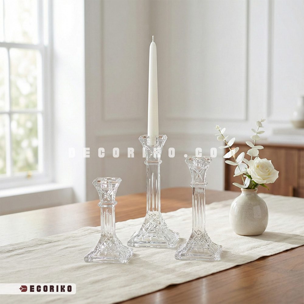 ست شمعدان کریستالی ۳ سایز؛ درخششی گرم در قلب خانه
