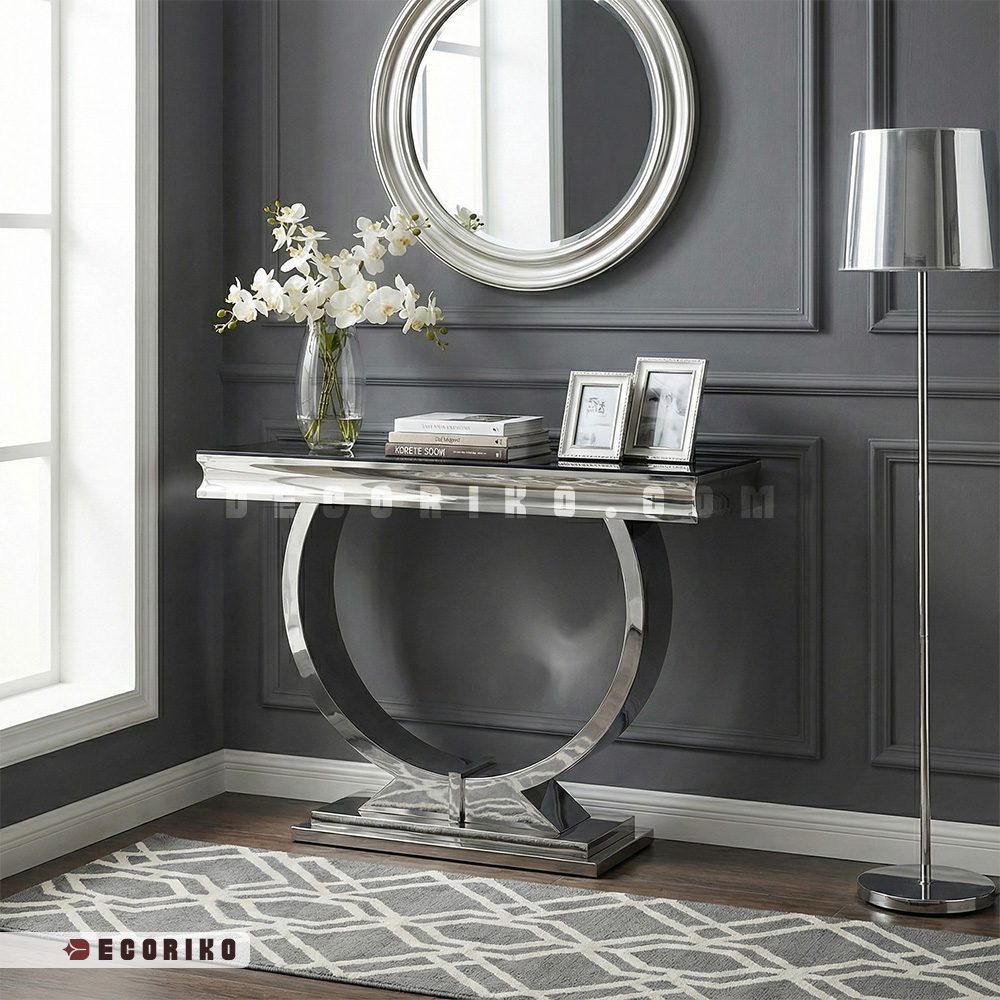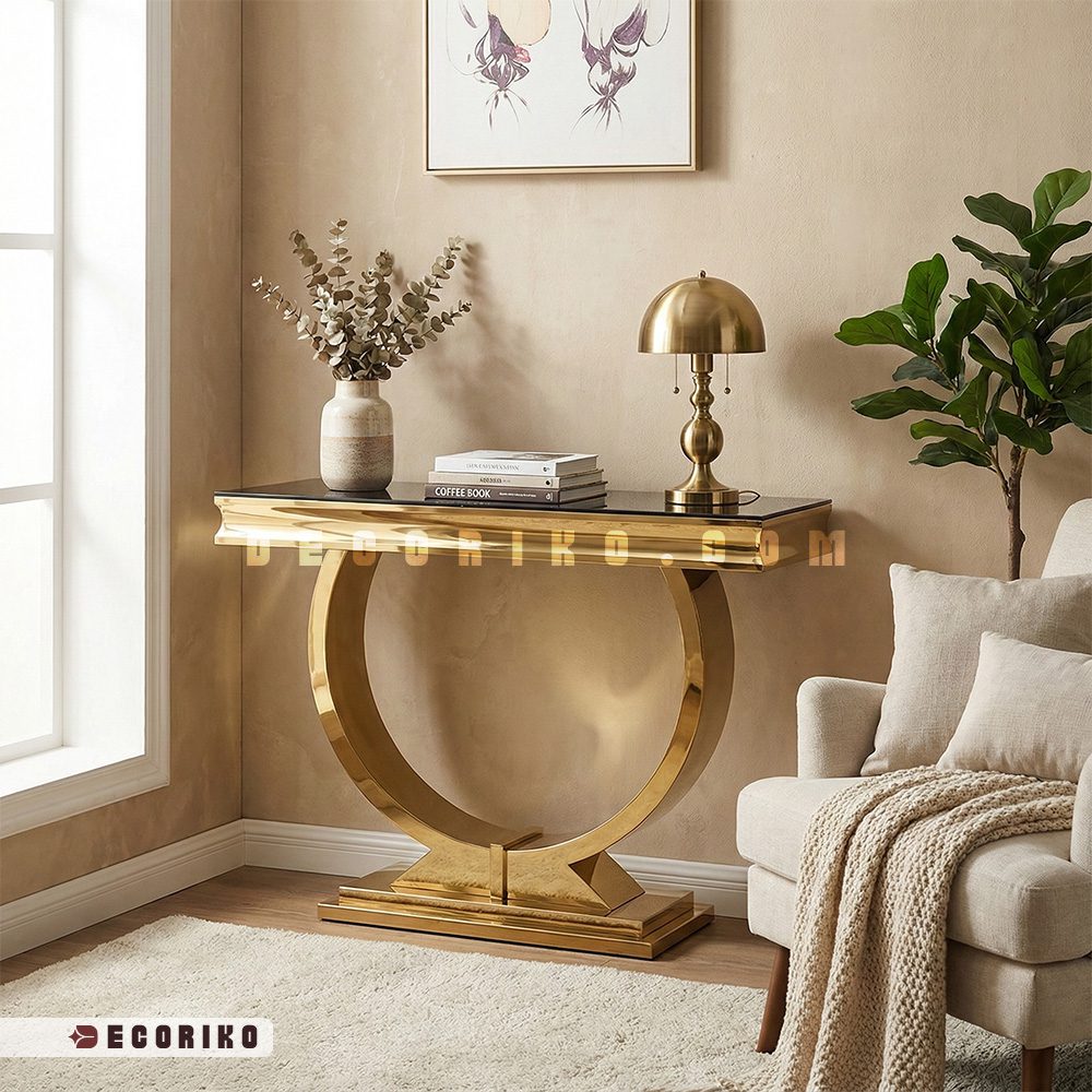 میز کنسول استیل مدرن طرح هلال؛ تلفیق هنر و درخشش در خانه شما