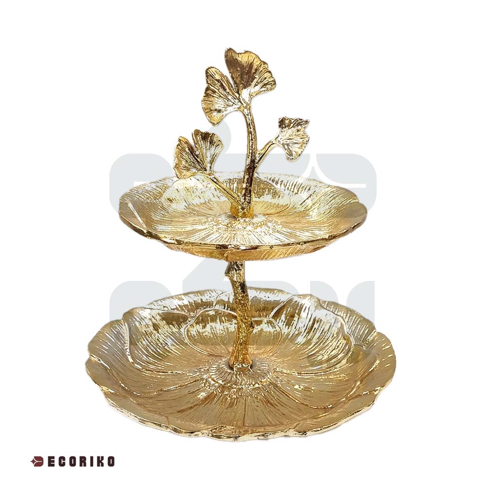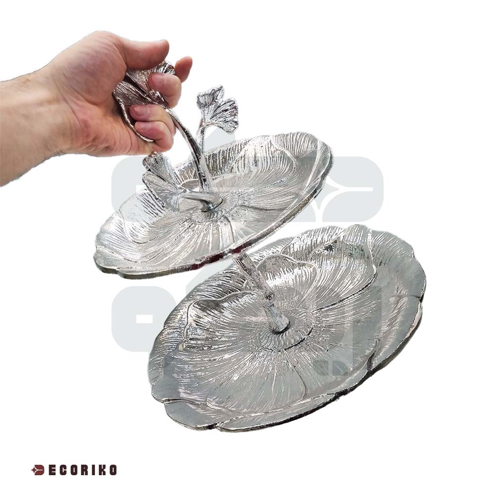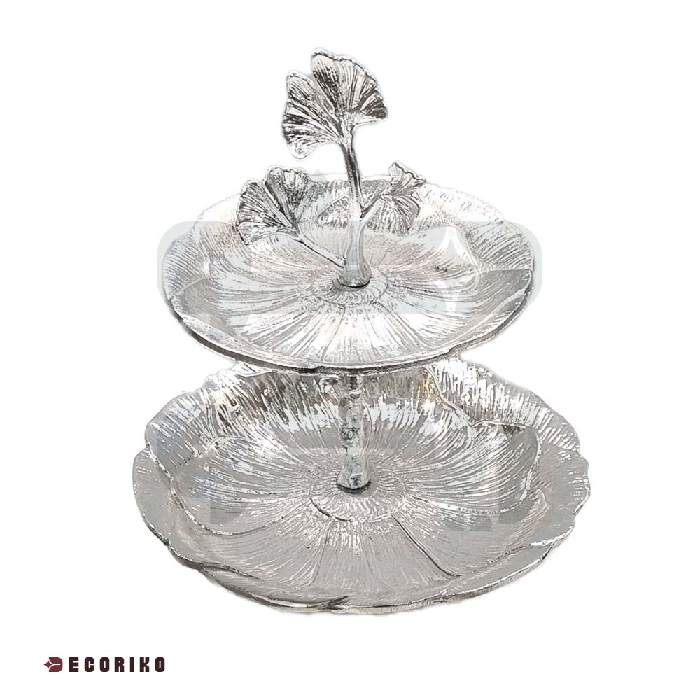 این محصول در دو رنگ محبوب طلایی (برای دکوراسیونهای گرم و کلاسیک) و نقرهای (برای فضاهای مدرن و مینیمال) موجود است. ساختار دو طبقهی آن به شما کمک میکند تا در کمترین فضای ممکن روی میز جلو مبلی یا میز ناهارخوری، انواع شیرینی، شکلات و حتی فینگرفودهای خوشمزه را سرو کنید.