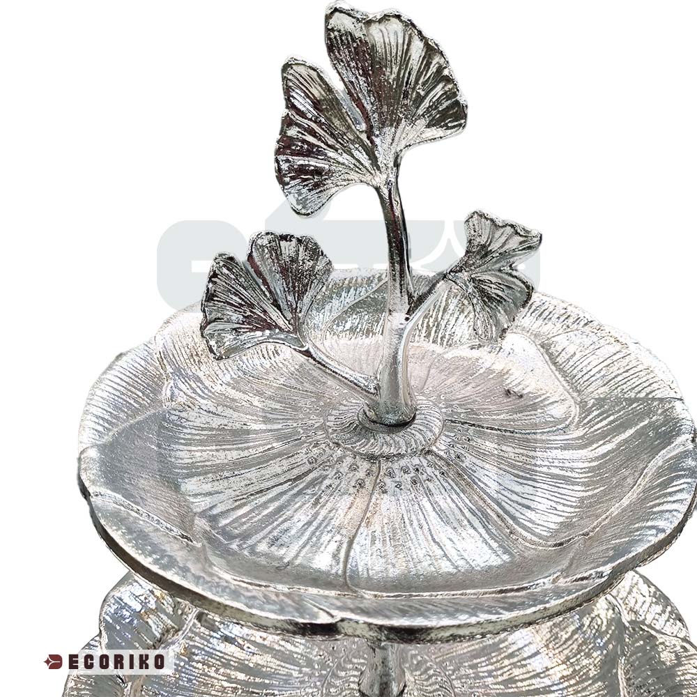 وقتی صحبت از یک میزبانی گرم و بهیادماندنی میشود، جزئیات همیشه حرف اول را میزنند. شیرینی خوری دو طبقه طرح برگ مدل لوتوس، دقیقاً همان قطعهی هنری است که نگاه مهمانان را به خود خیره میکند. این ظرف زیبا با الهام از فرم ارگانیک و آرامبخش برگها (شبیه به برگ زیبای جینکو) طراحی شده و بافتی ظریف و طبیعی روی بدنهی فلزی آن نقش بسته است.
